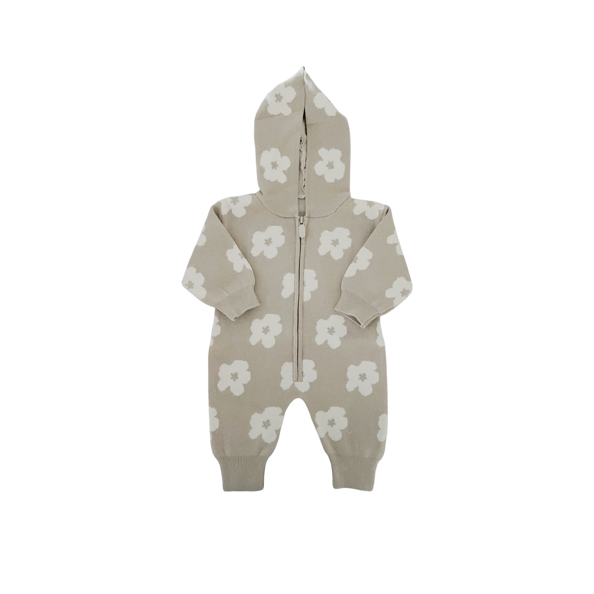 KNITTED FLOWER ZIP UP ROMPER